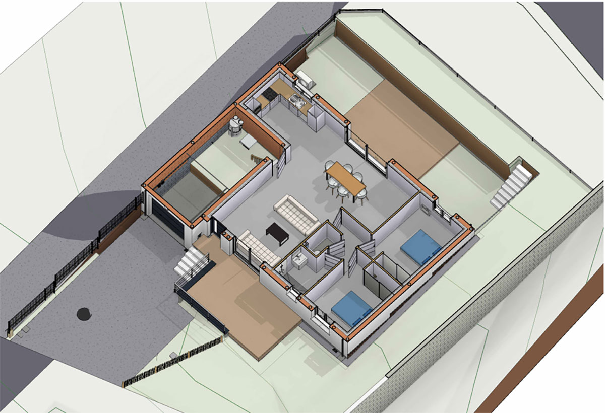 La maison dispose de deux terrasses une au Sud et une au Nord pour permettre de profiter de l’extérieur pendant les chaudes périodes estivales tout en étant moins exposé au soleil.