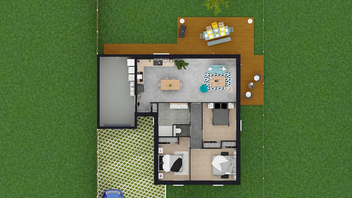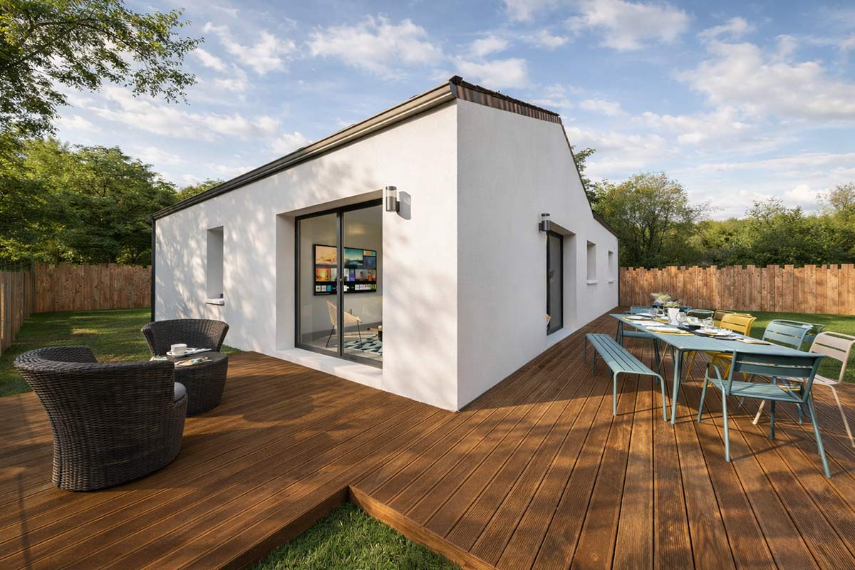 Cette maison est une proposition de projet : nos plans sont 100 % modifiables et le prix pourra varier en fonction des adaptations souhaitées. Les visuels sont non contractuels.