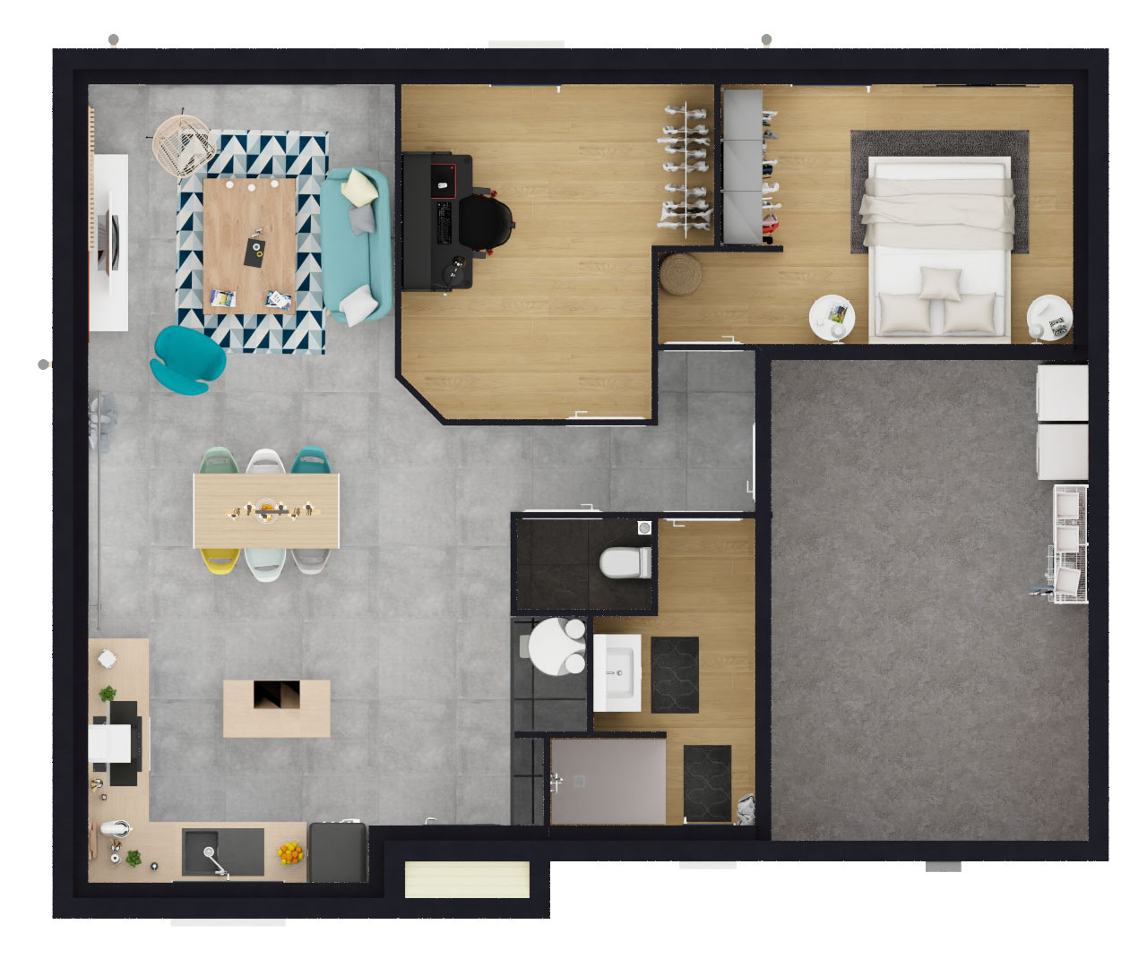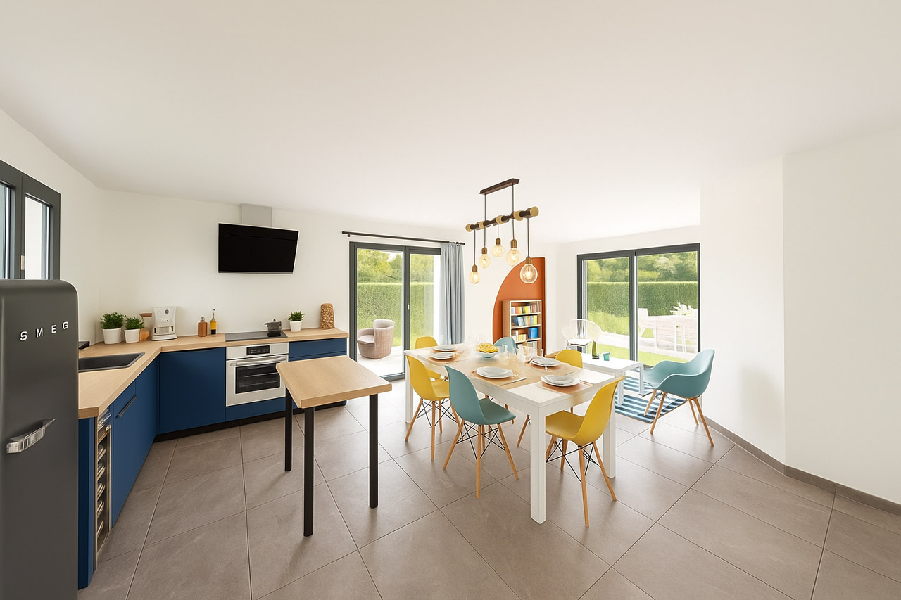Cette maison est une proposition, nos plans restent 100% modifiables, le prix pourra varier en fonction des modifications et des fondations imposées par l’étude de sol. Les visuels sont non contractuels.