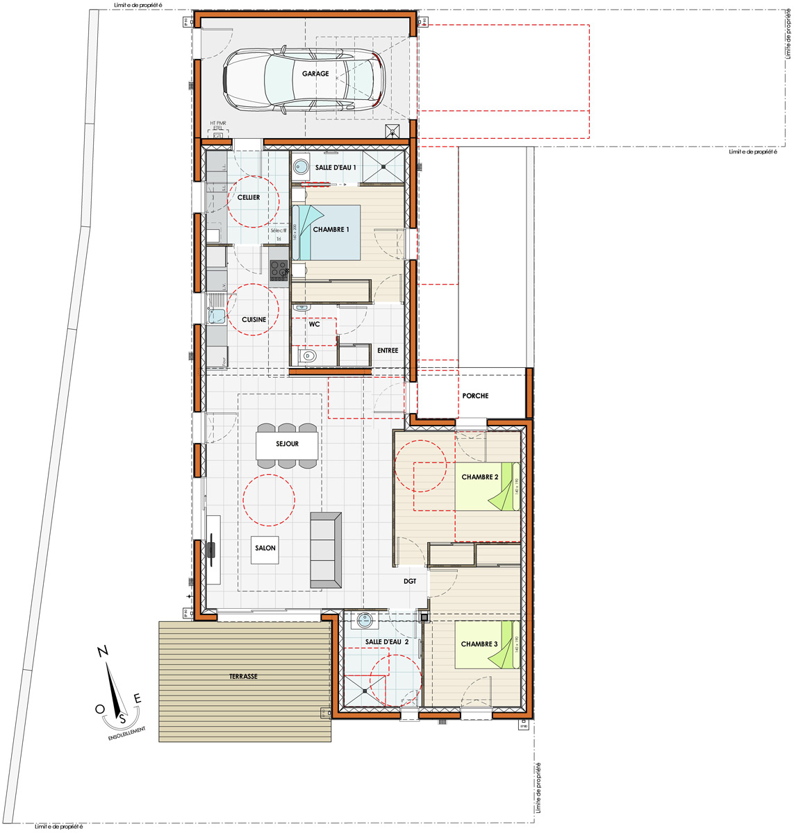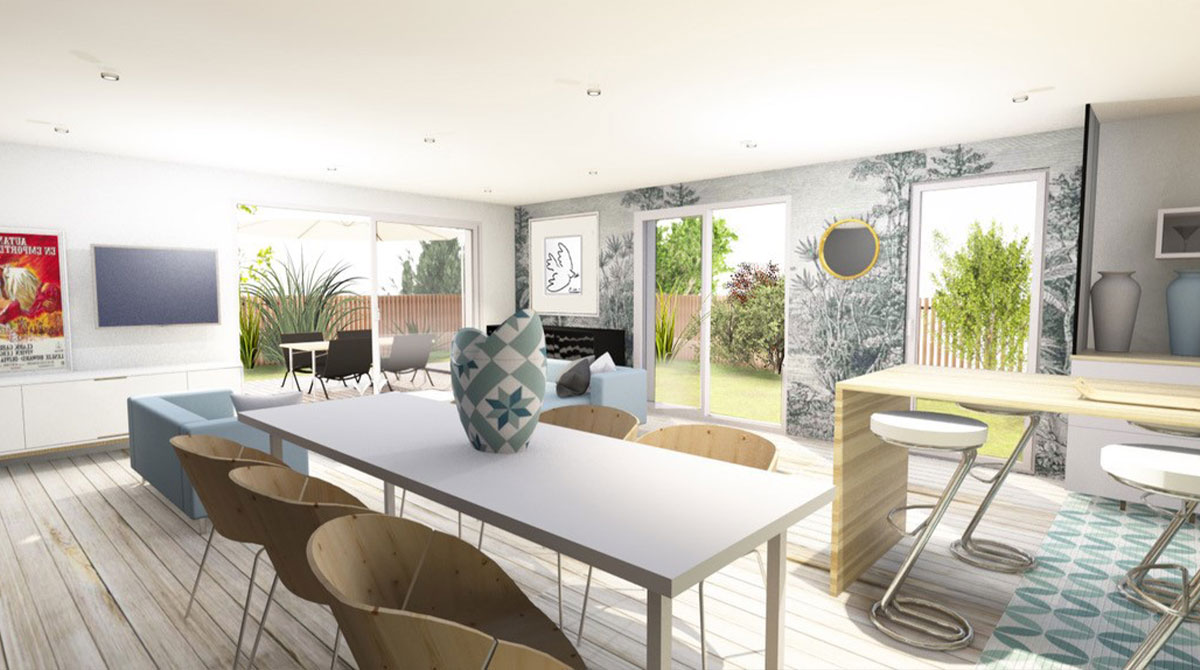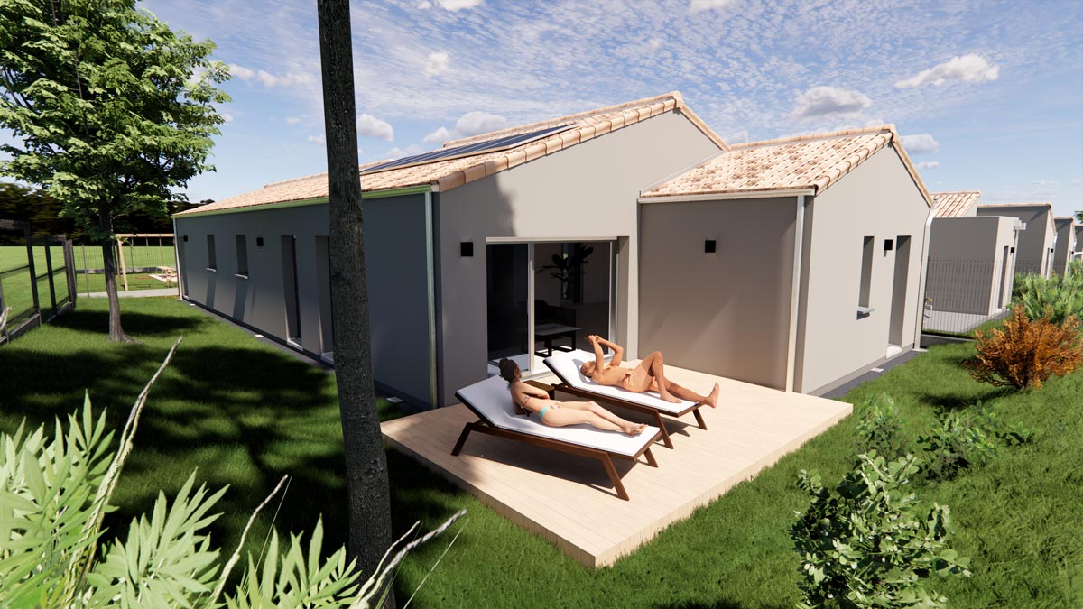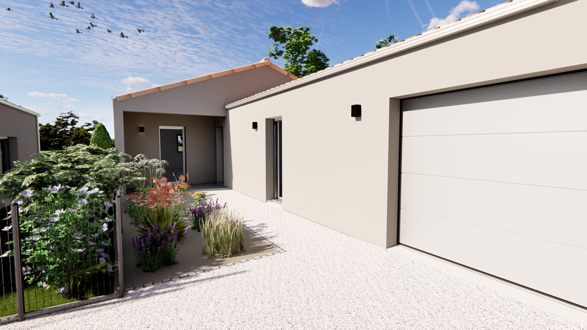 Cette maison est une proposition, nos plans restent 100% modifiables, le prix pourra varier en fonction des modifications et des fondations imposées par l’étude de sol. Les visuels sont non contractuels.