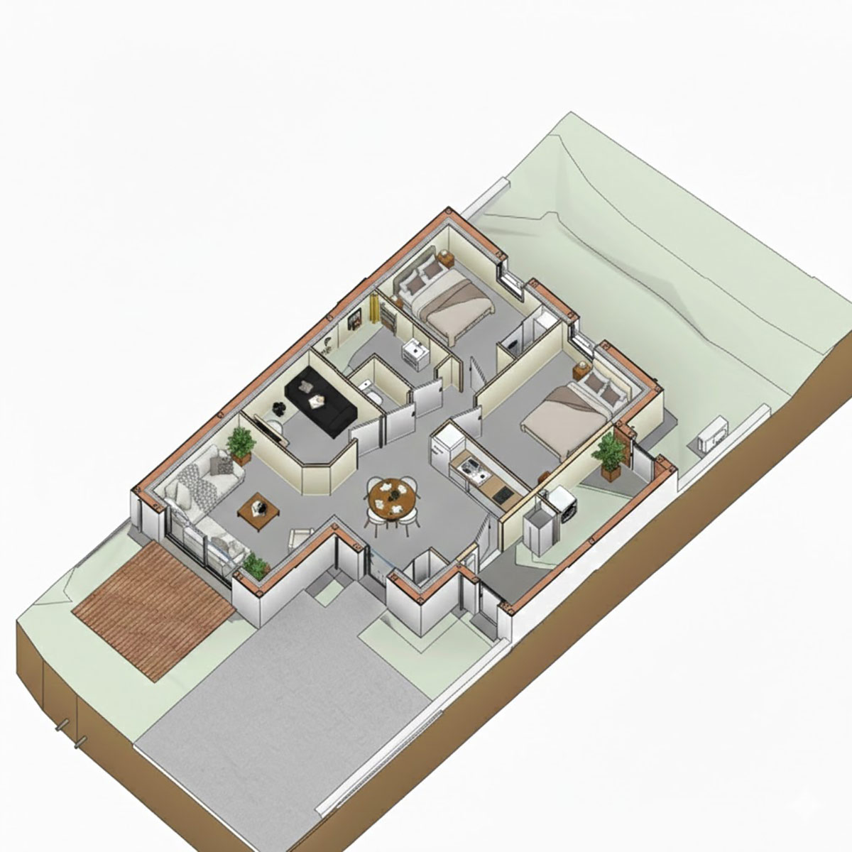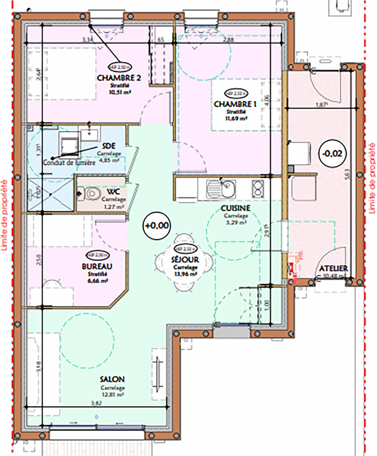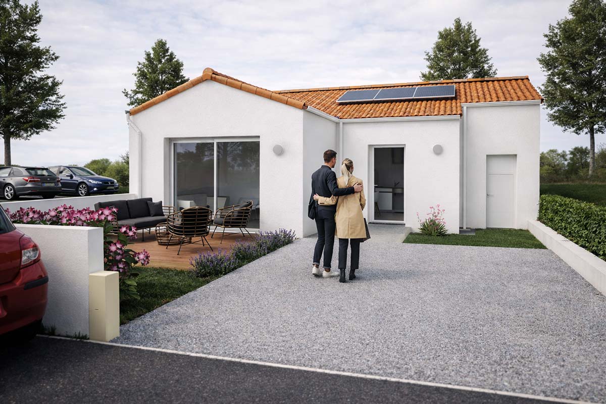 Cette maison est une proposition, nos plans restent 100% modifiables. Le prix pourra varier en fonction des modifications et des fondations imposées par l’étude de sol. Les visuels sont non contractuels.